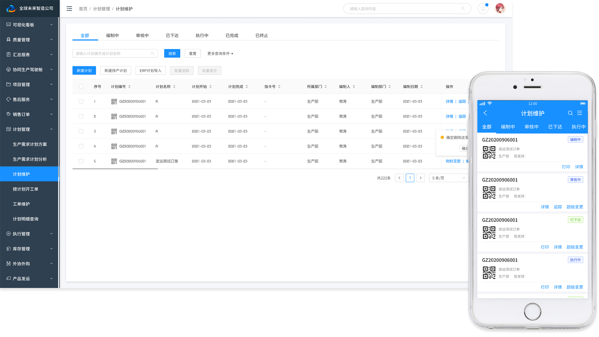 透明化管理工廠,打通訂單、計劃、生產、質檢、庫存、設備等環節